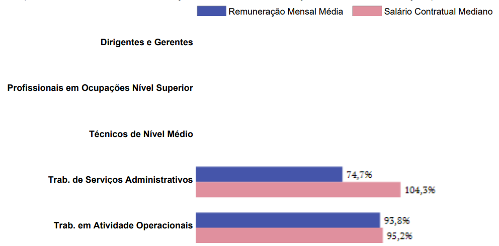 - O salário contratual mediano das mulheres equivale a 97,6% do recebido pelos homens.